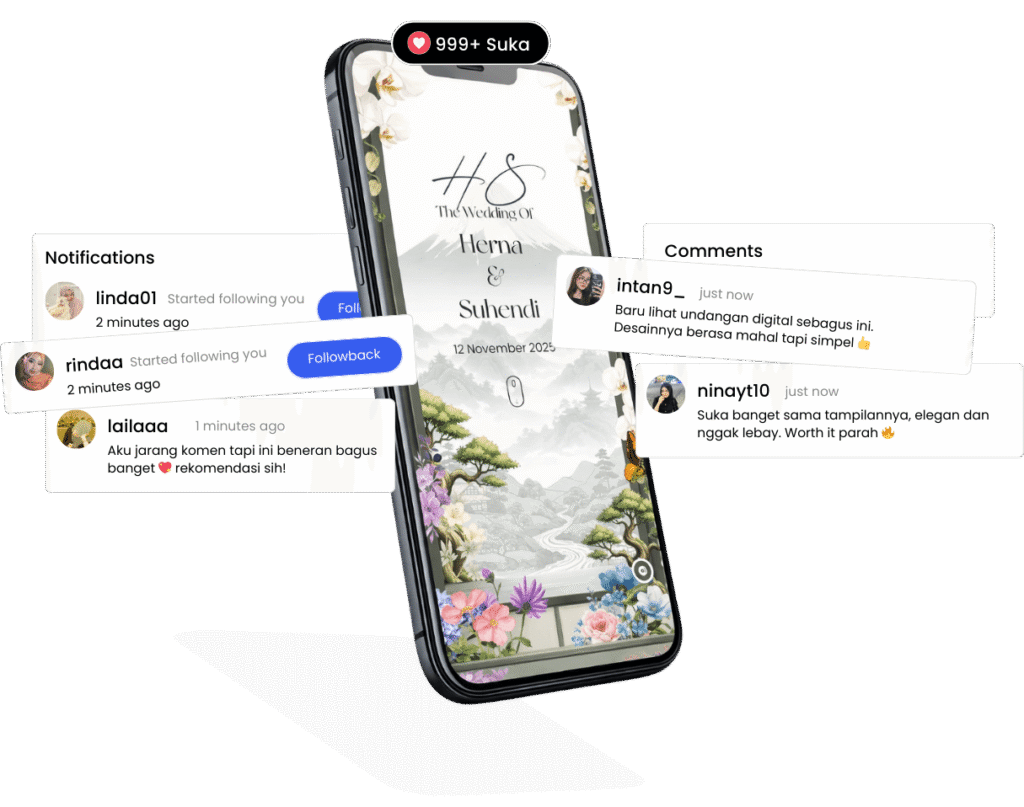 Biaya terjangkau, undangan digital tetap elegan dan berkualitas tinggi.
